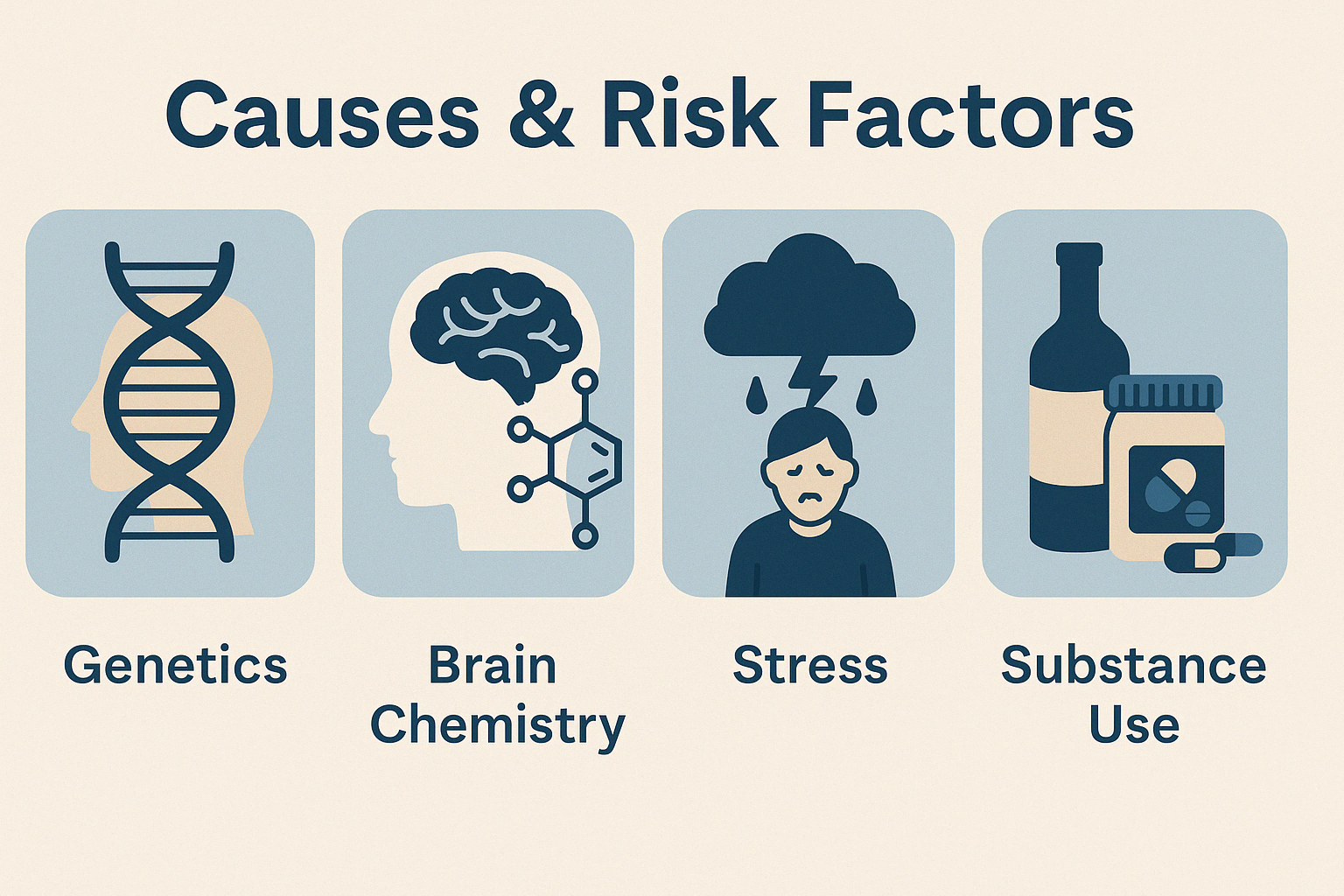 - Brain chemistry: Irregularities in neurotransmitters like dopamine, serotonin, and norepinephrine