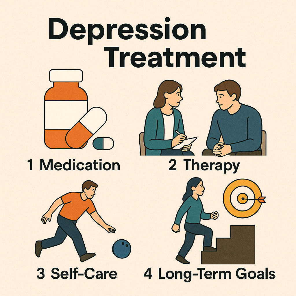 - Mood stabilizers or antipsychotics – If depression is severe, recurrent, or bipolar-related