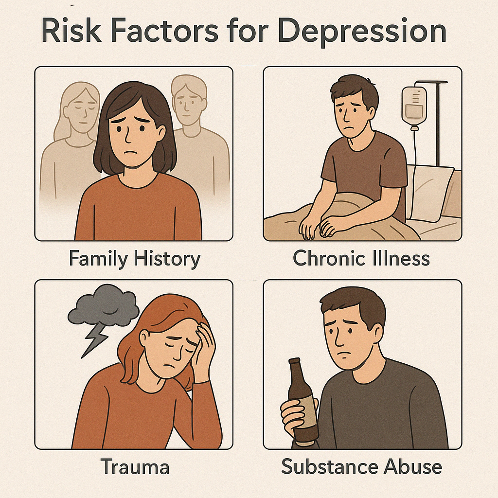 - Chemical imbalances in brain neurotransmitters (e.g., serotonin, dopamine, norepinephrine)
